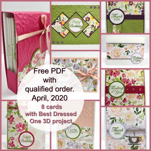 All orders of $40.00 or more before tax and shipping placed on my online store with Hostess Code HH23G4DP will qualified for this month’s projects download. The PDF’s are design by Frenchie’s Design Team. Order of $40 or more before tax and shipping with the hostess code you will receive the PDF by email.