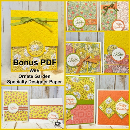 Live class tonight. Holly and I will be live on YouTube. I will share my One Sheet Wonder with 6 fun fold cards. With one sheet of the Perennial Essence designer paper, I share how to cut the 12 x 12 sheet and use on 6 different fold cards.