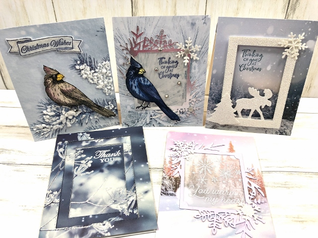 Today it is all about the Feels Like Frost designer paper and the Detailed Dove Dies. Such a great combo for Christmas card and for sympathy cards. Who woulda thought to use this combination for sympathy cards, well it is an amazing combo for both Christmas and sympathy. Also, I can see a lovely wedding card with these two combos. Not much stamping cut and glue and boom we have some beautiful cards.