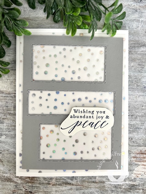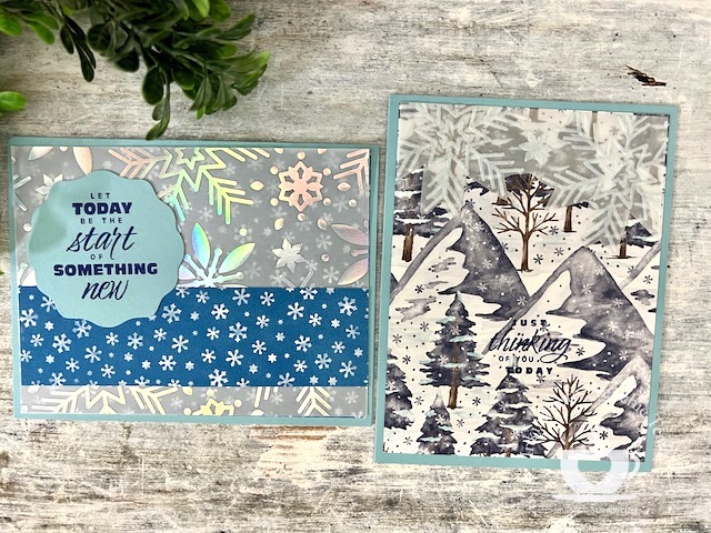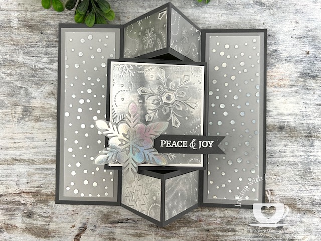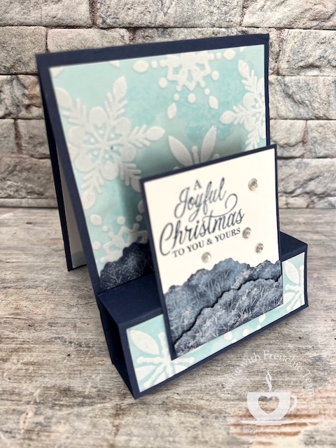 I challenge my team to create a card with a specific product or technique or fold it each month, and when we release a new catalog, we swap. For example, last August, we exchanged cards we created using products from the Holiday Catalog 2022; last month was creating cards with Linen Specialty Paper. It is great to see different ways to see other creations with the same product, like this month, the Snowflake Vellum.