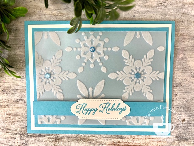 It is about Frenchie’s Teammates Showcasing Cards With The Snowflake Specialty Vellum. I love to share with you all these fantastic talented teammates’ creations.