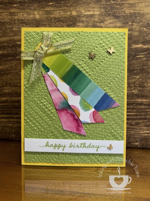 Seeing their fantastic creations brings me joy when I challenge them to design a card with a specific product, technique, or fold each month—this month focused on the Full Of Live 6 x 6 Designer Paper from page 43 of the 24-25 Annual Catalog. Next month, it will be the Season of Green and Gold Designer Paper. It’s incredible to see how different people use the same products to create unique greeting cards, like those with A Little Latte Designer paper.